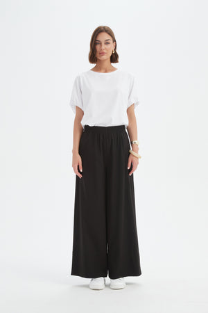 Relaxed yet refined, our Deep Cuff Palazzo Pant offers effortless style with a contemporary silhouette. Designed with a wide leg and deep cuff, they feature an elasticated waistband for comfort, practical pockets, and a mid-to-high rise for a flattering fit. Perfect for casual or elevated looks, these pants are a versatile addition to your wardrobe.