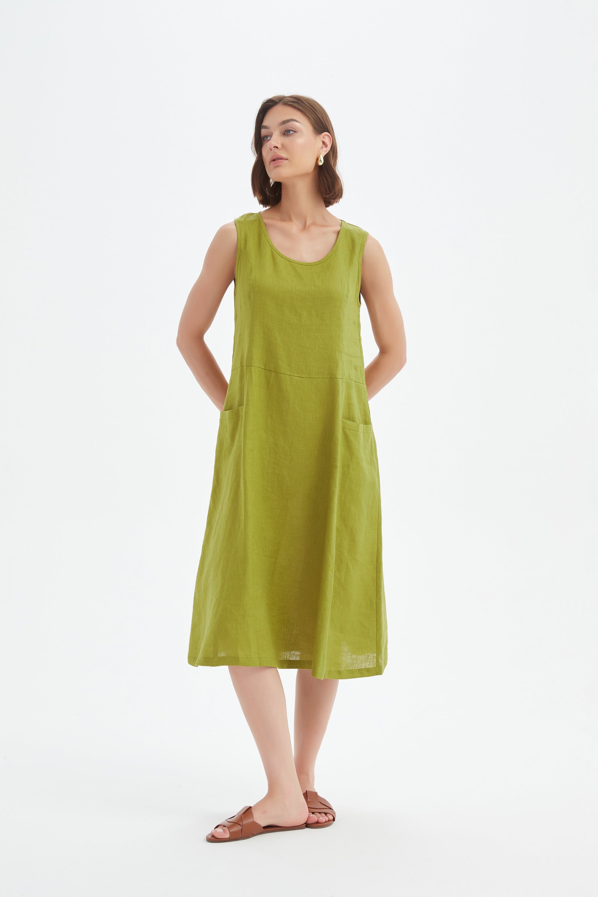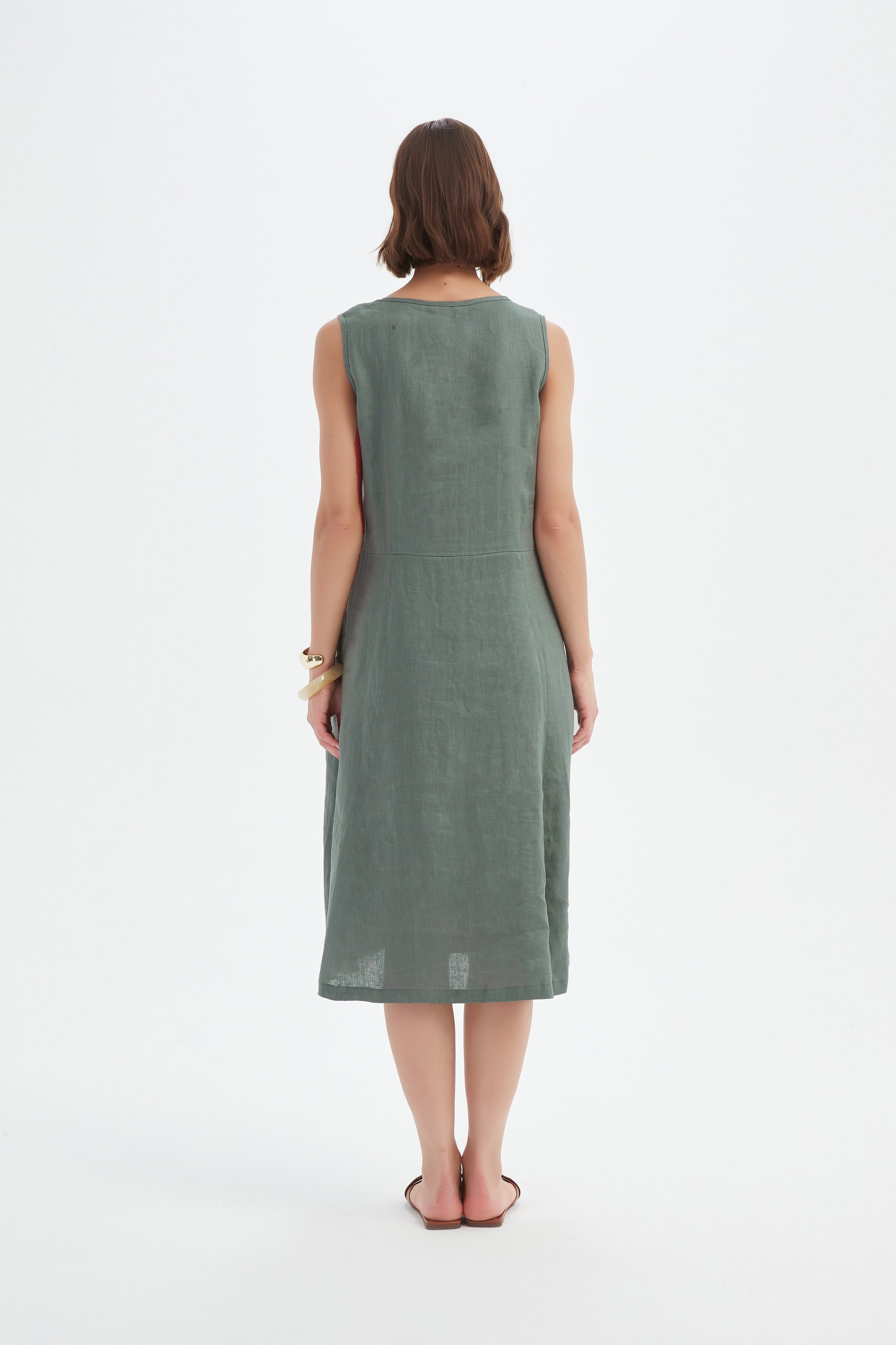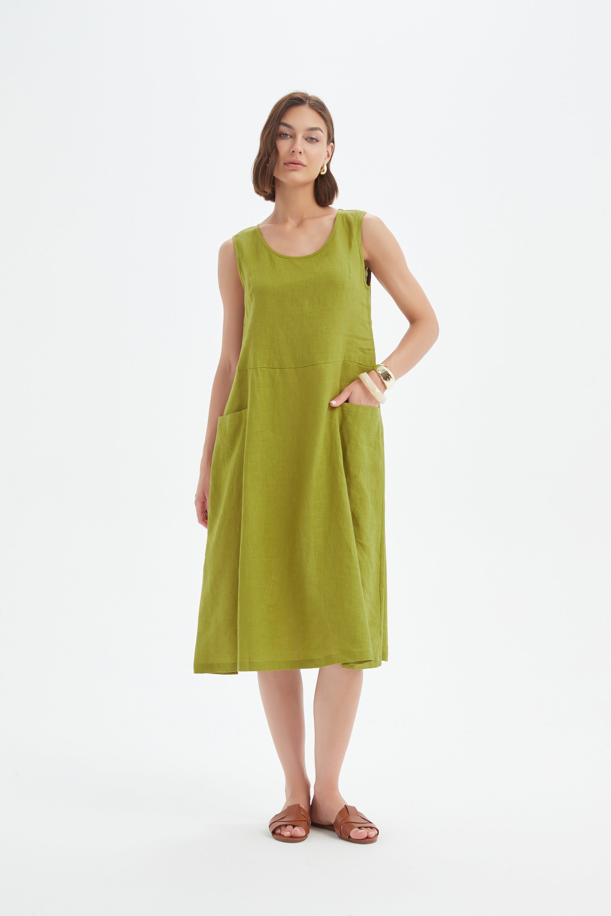 Light, airy, and effortlessly chic, the Sleeveless Pocket Dress is a summer wardrobe essential. Crafted from 100% French Linen, it features a scoop neckline, structured princess seams, and a flattering A-line silhouette that skims the body. Practical pockets add functional elegance, making this dress perfect for easy summer dressing.