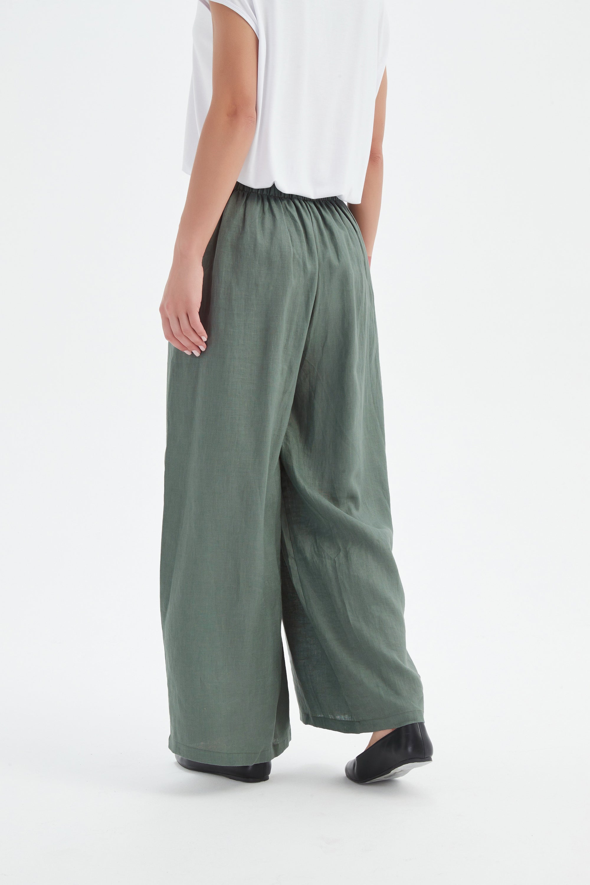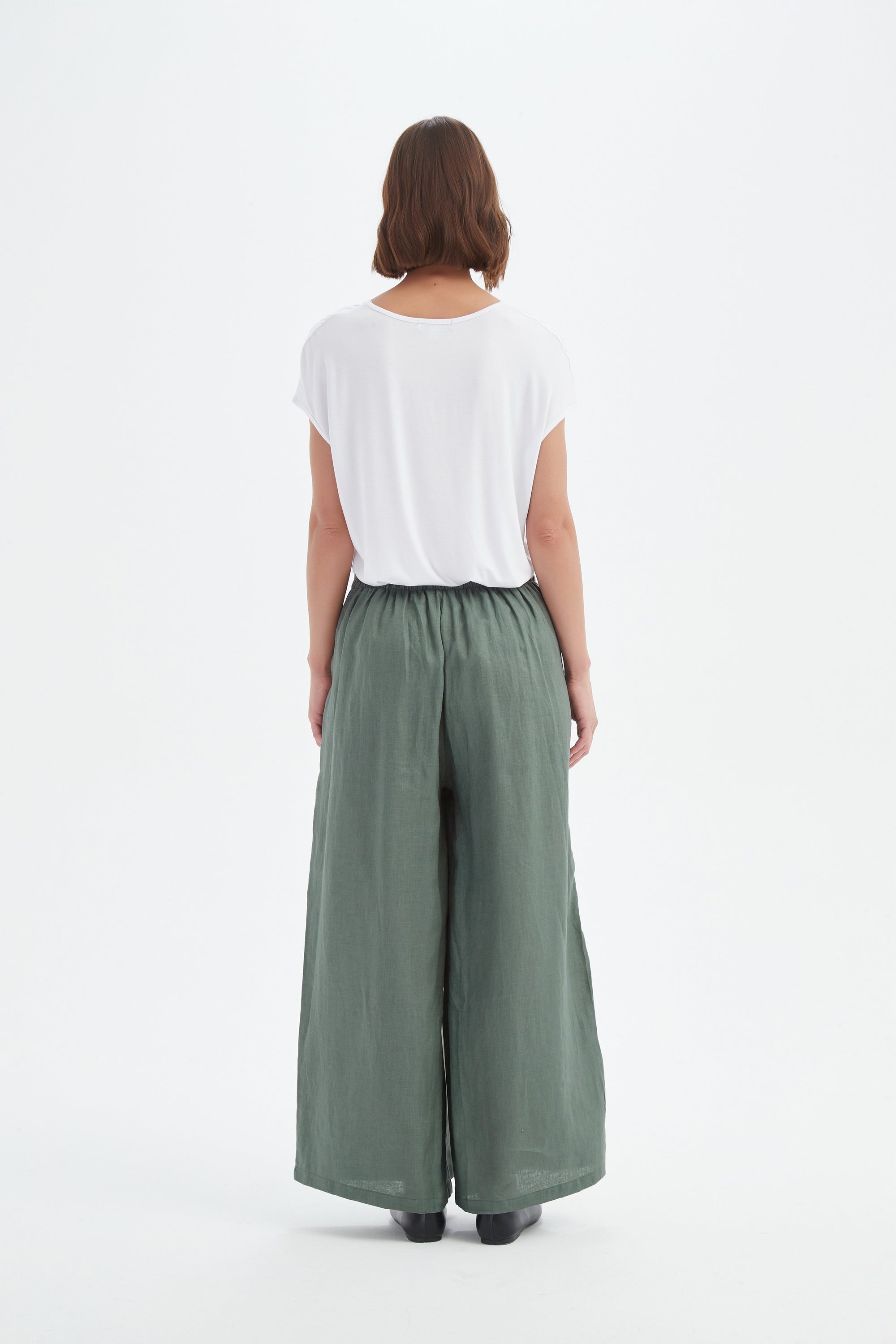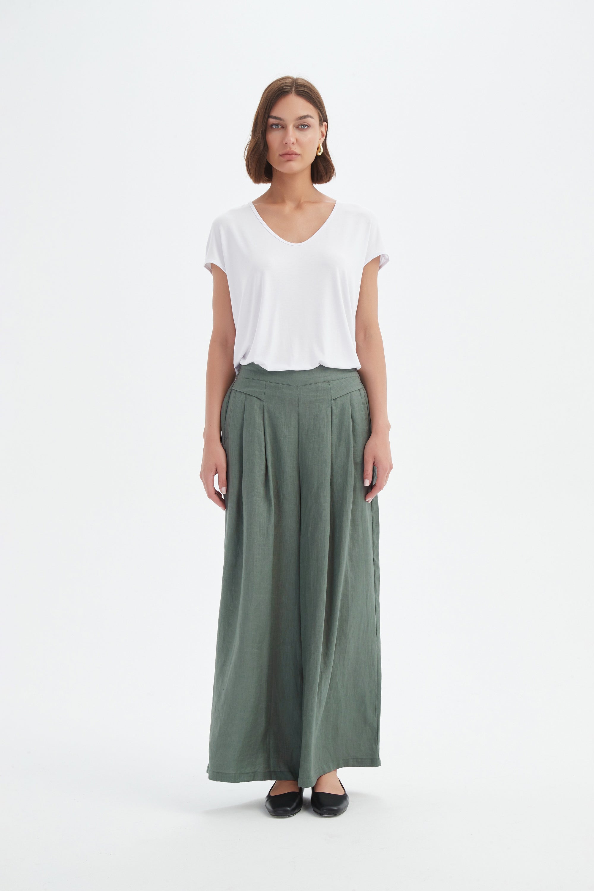 The Pleat Front Palazzo Pant offers a perfect blend of comfort and sophistication. With its wide-leg silhouette and pleat front detail, this high-waisted style exudes effortless elegance. The elastic back waistband ensures a comfortable fit, while functional pockets add practicality. Designed for versatile wear, these palazzo pants will elevate any look with ease.