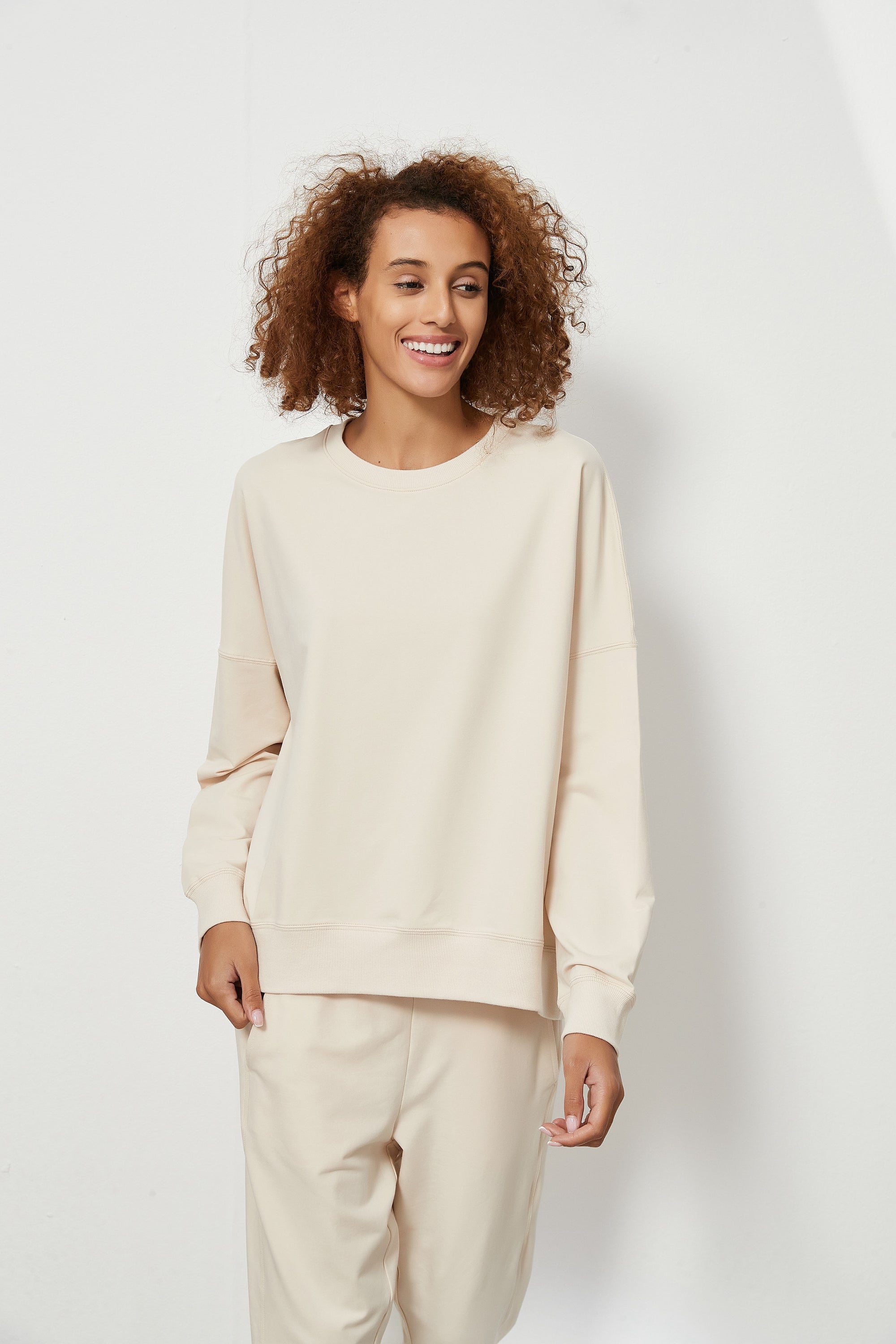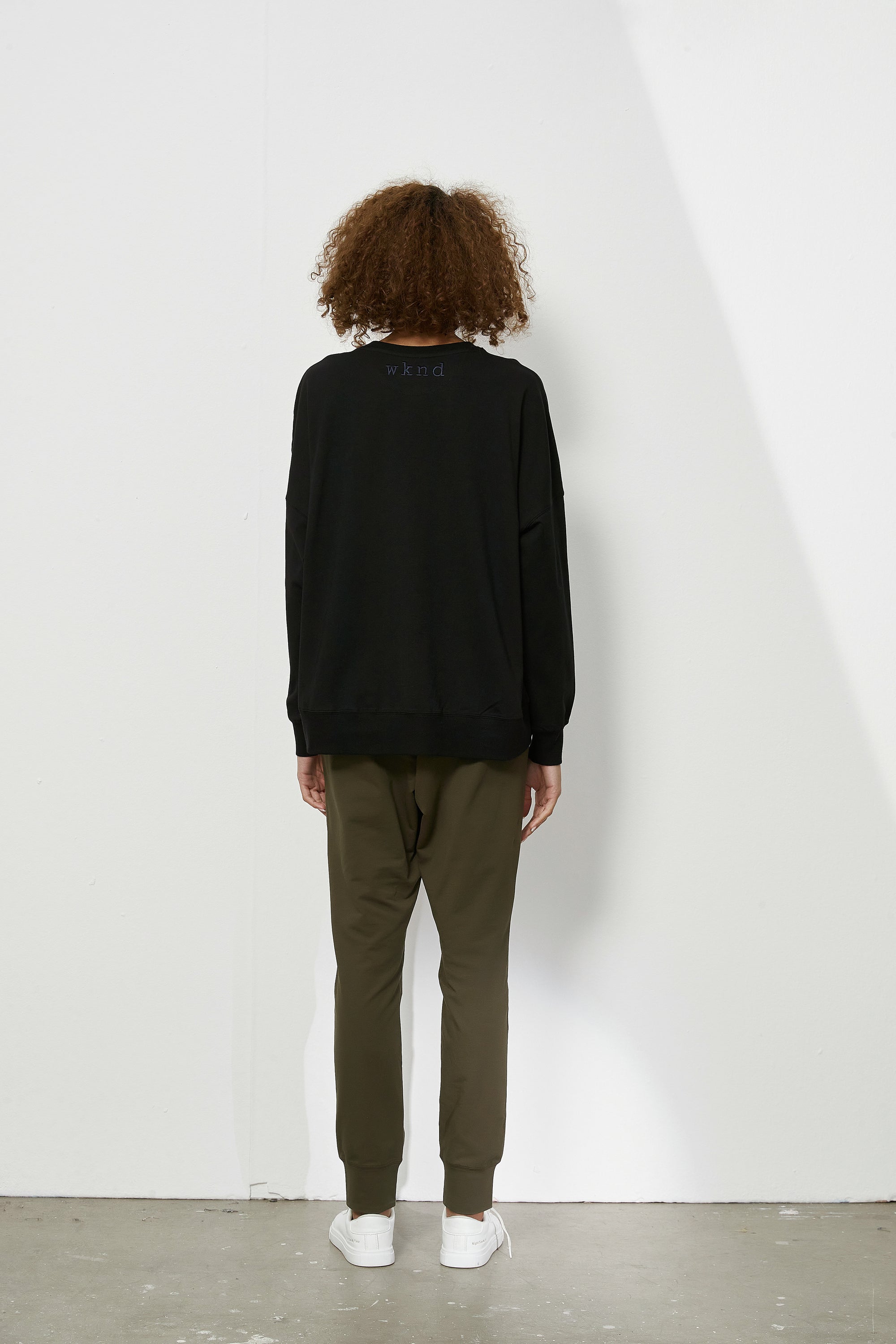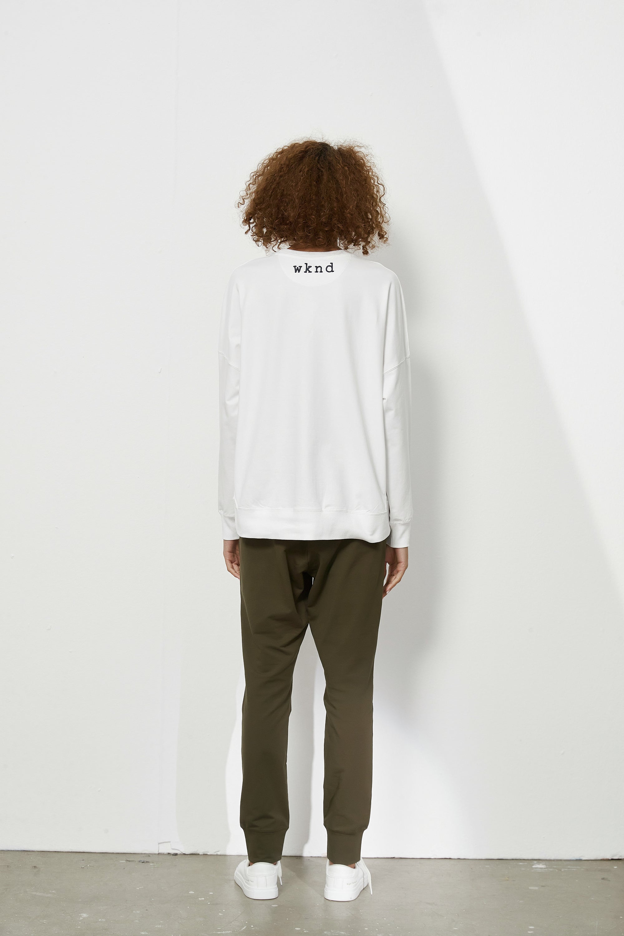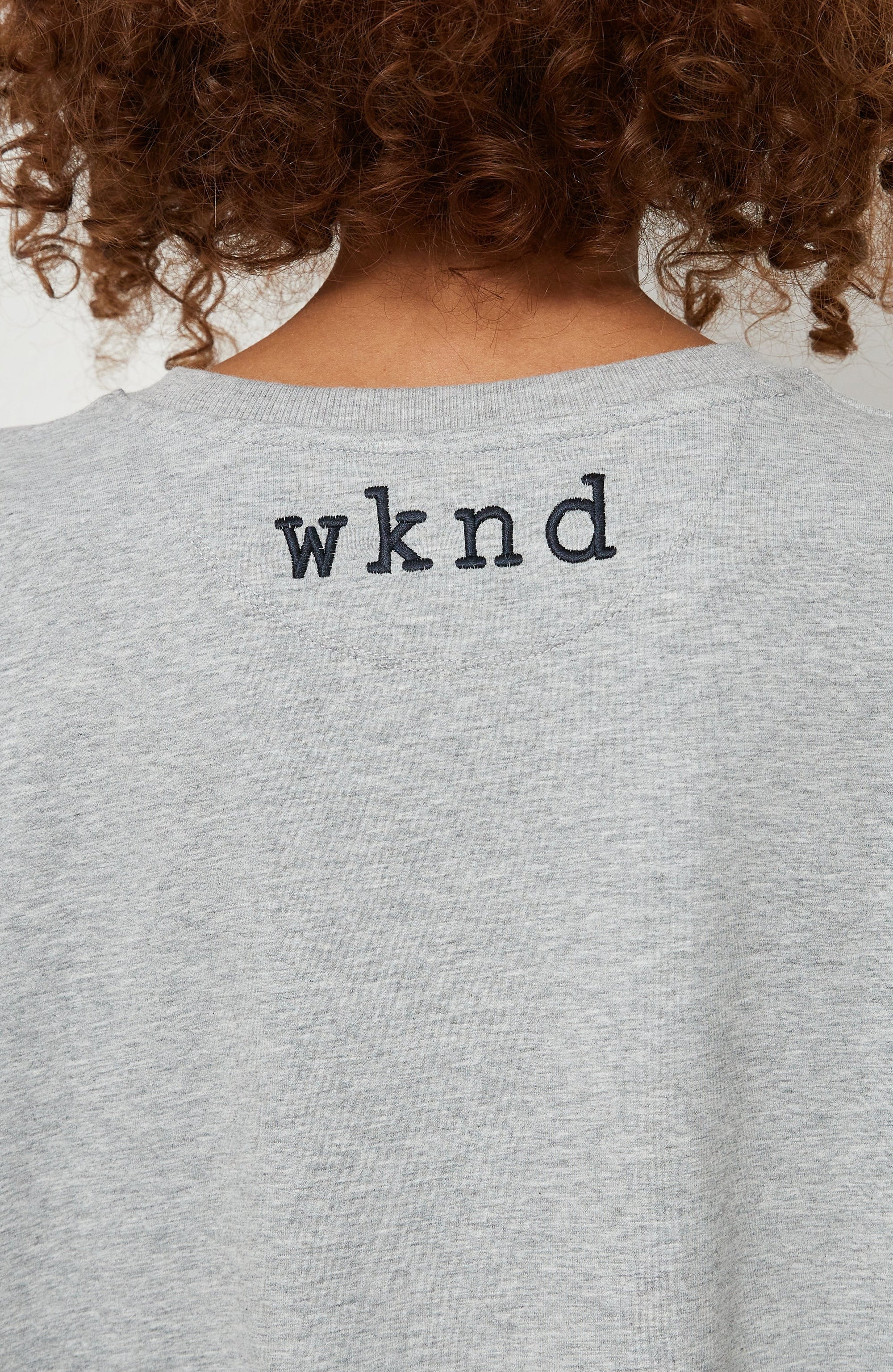A simple sweat in a lightweight summer jersey. With a curved hemline, rib detailing on the cuffs & hem and a round neckline this plain sweat top is a comfortable addition to your weekend wardrobe. It features 'wknd' stitch detailing on the back yoke.