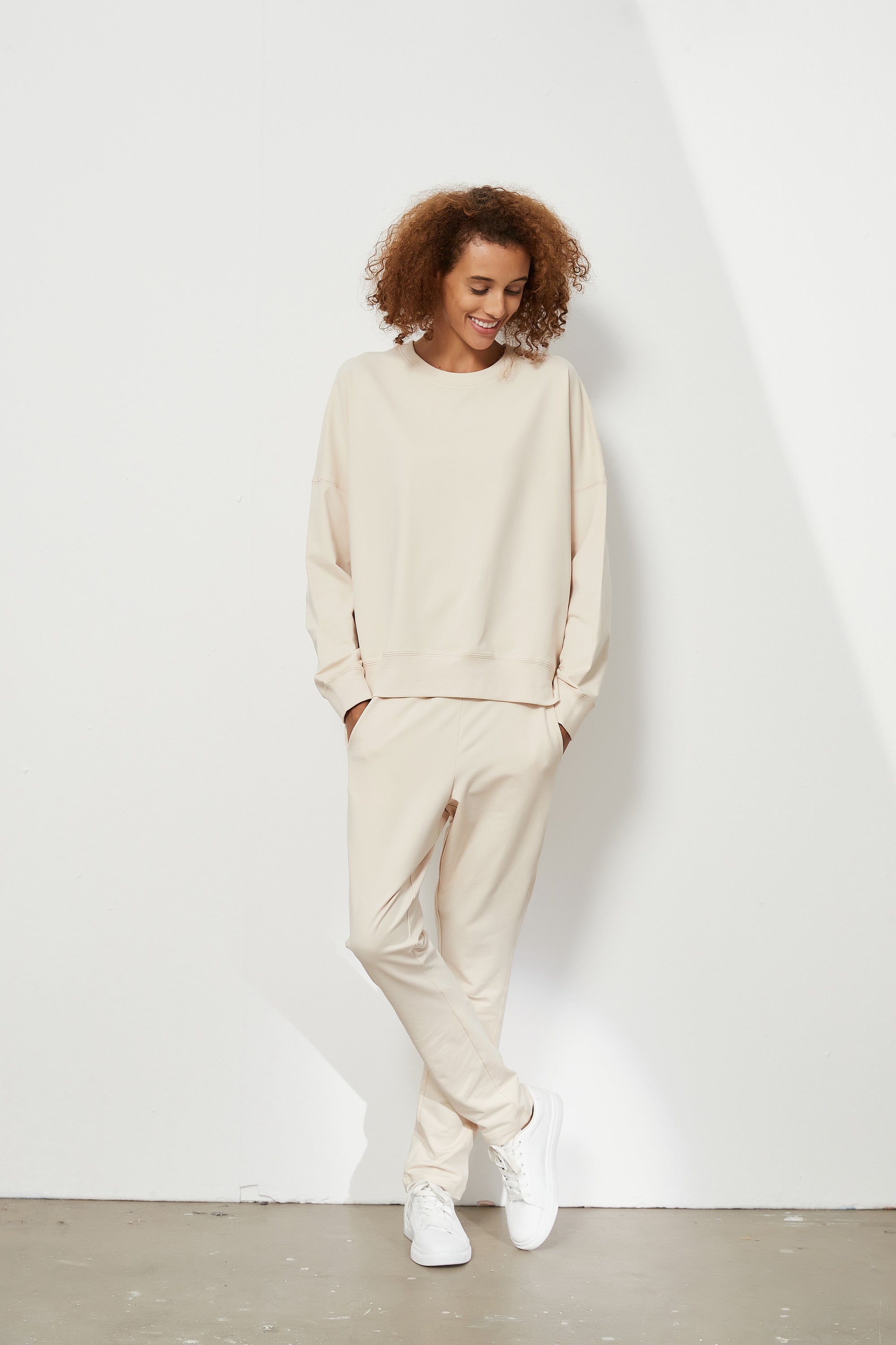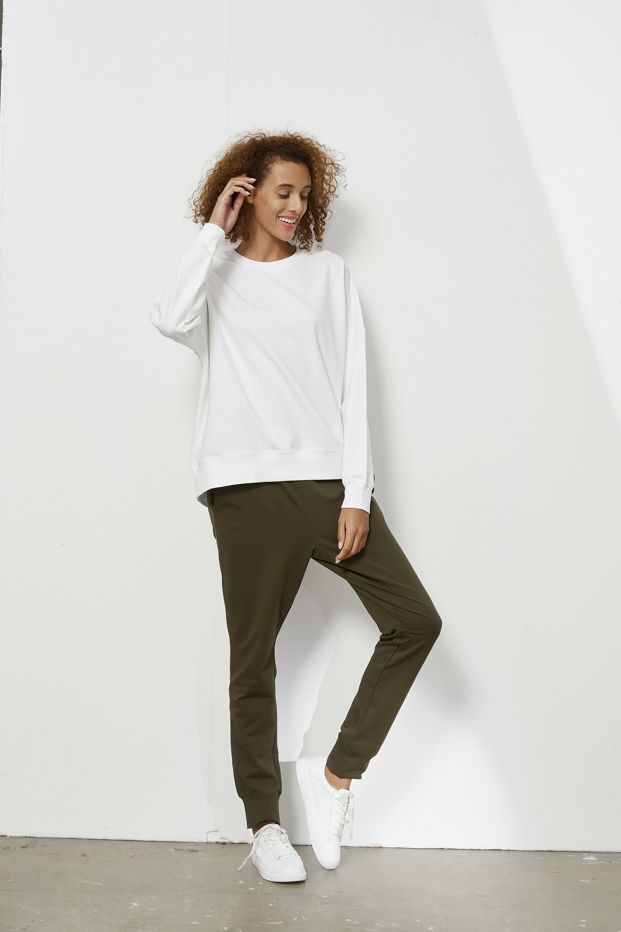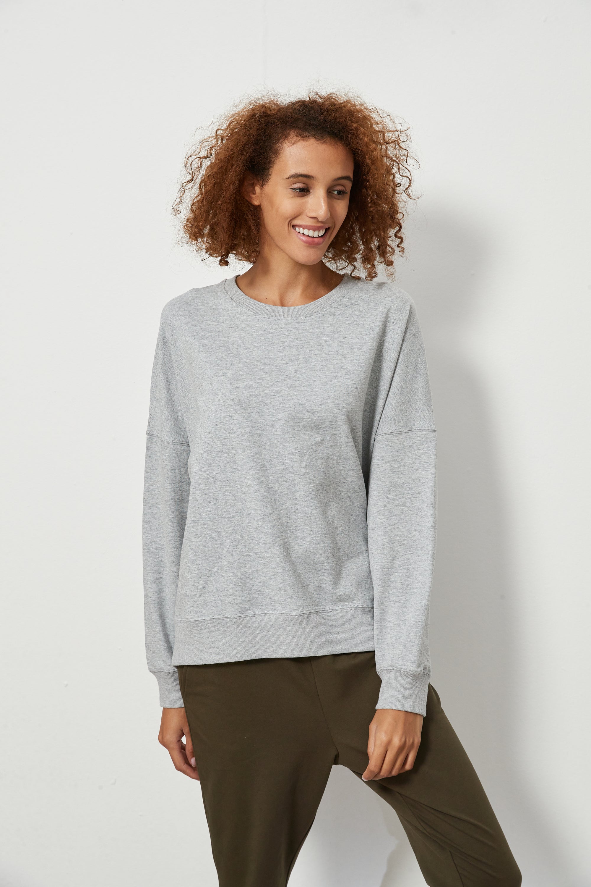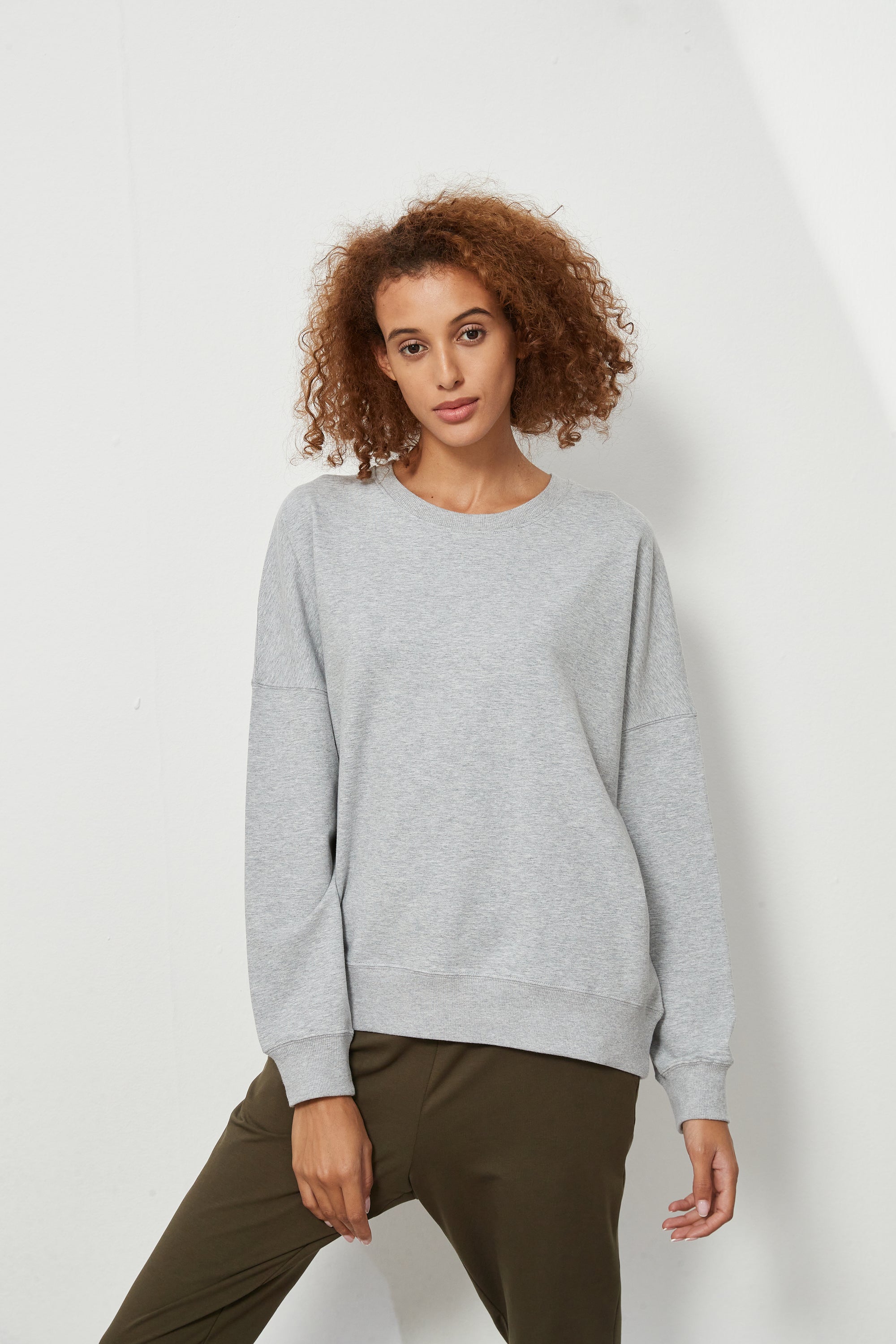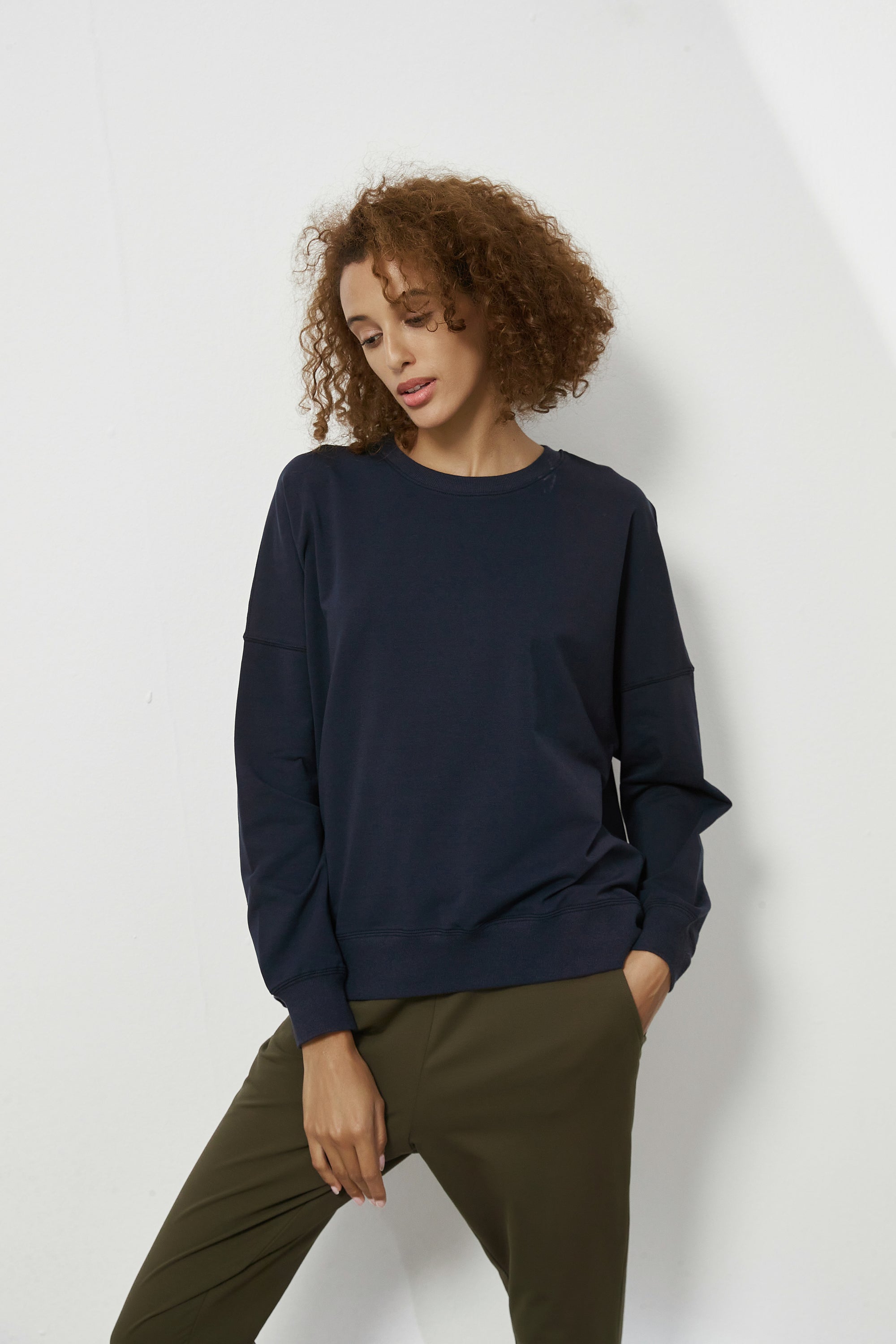 A simple sweat in a lightweight summer jersey. With a curved hemline, rib detailing on the cuffs & hem and a round neckline this plain sweat top is a comfortable addition to your weekend wardrobe. It features 'wknd' stitch detailing on the back yoke.