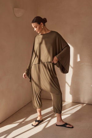 Elevate your casual wardrobe with our Drop Crotch Pant, designed for both comfort and style. Featuring a relaxed drop crotch, cropped length, and elasticated waist and cuffs, these pants offer a modern silhouette that's easy to wear. Crafted from soft jersey fabric, they also include pockets for added functionality, making them the perfect go-to for laid-back days.