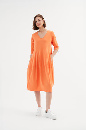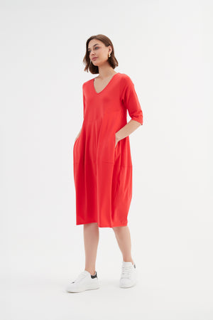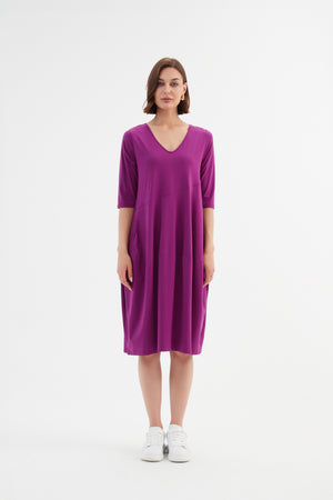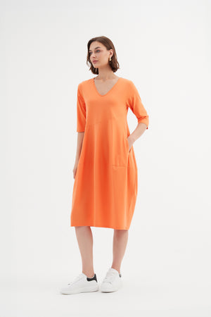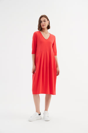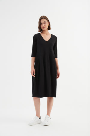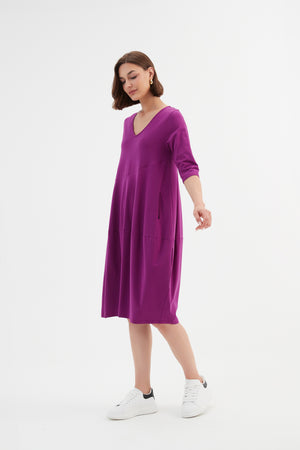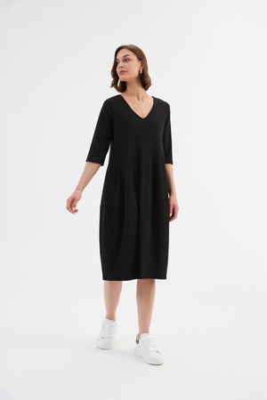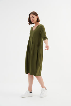 Introducing our best-selling Diagonal Seam Dress, now available in a V-neck version. This elegant midi dress combines style and comfort, making it a must-have addition to your wardrobe. Elevate your wardrobe with the V Neck Diagonal Seam Dress and enjoy effortless style with its flattering design and practical features.
