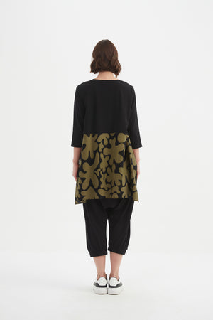 The Ava Print Top blends comfort and structure with its cotton jersey and cotton poplin design. Featuring 3/4 sleeves, a scoop neck, and a high-low hem with side splits, it’s an effortless staple with a modern edge.