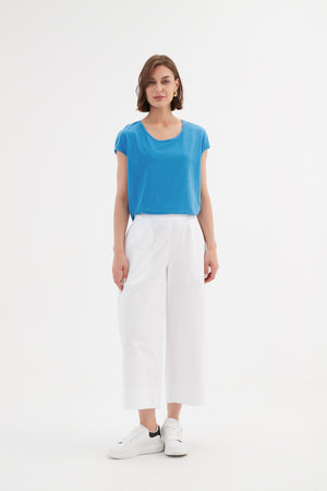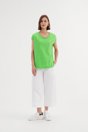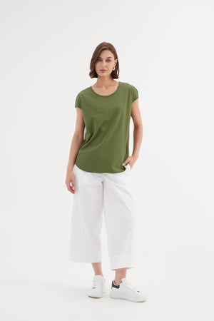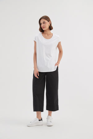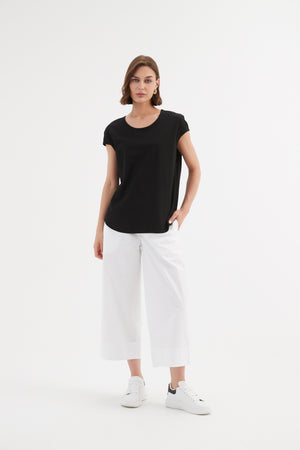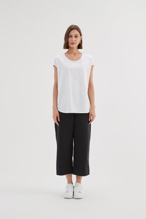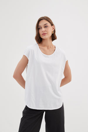 The Cap Shoulder Tee is the perfect blend of casual comfort and style. Made from soft cotton jersey, it features cap sleeves and a flattering curved hem for a relaxed, modern fit. The scoop neckline adds a touch of elegance, making this versatile tee an essential for easy, everyday wear.