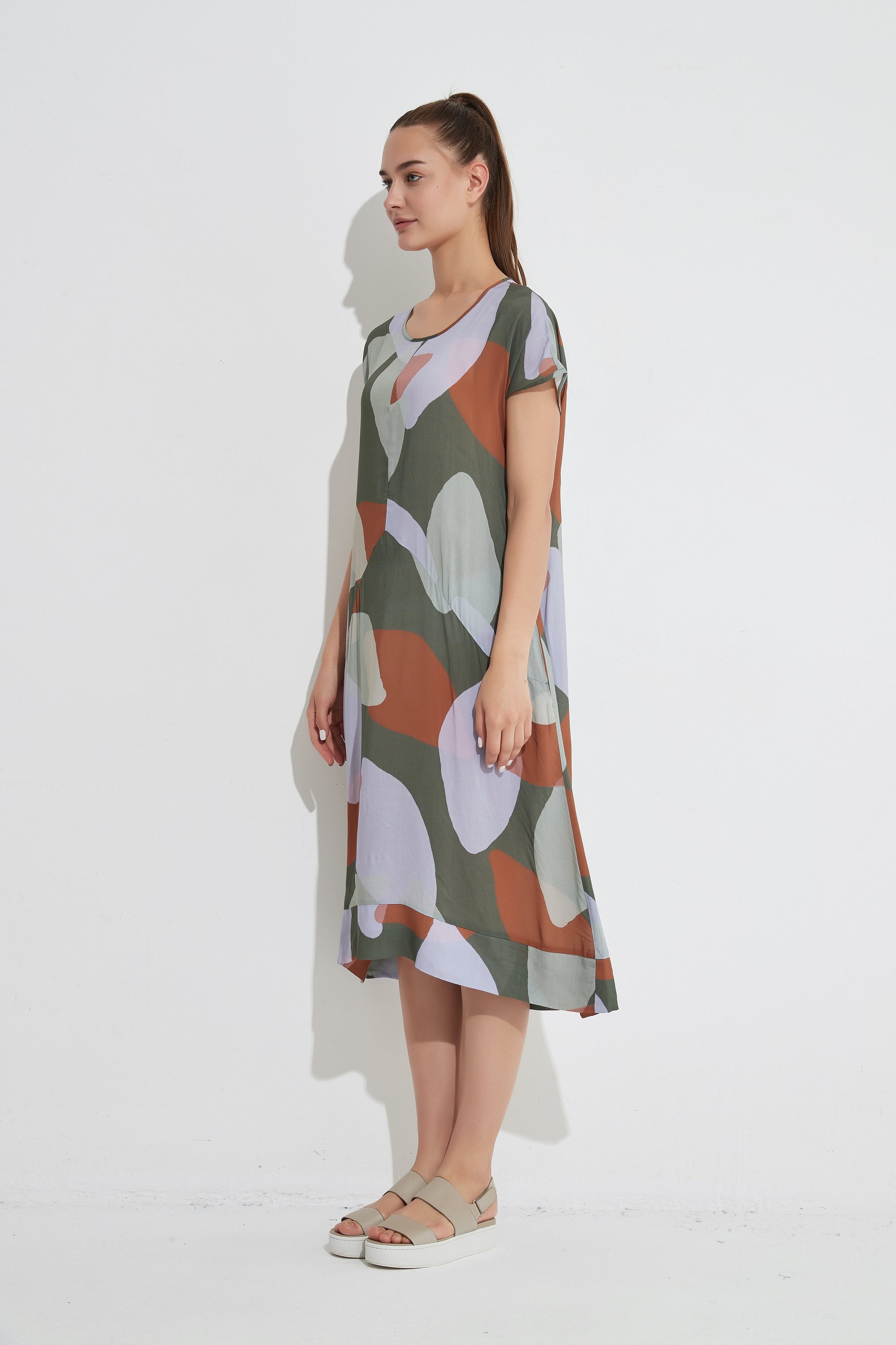 An updated version of our Longline Dress this style features centre front seam detailing which drapes down into a wide skirt shape with a thick hem. Crafted from a soft, luxurious rayon fabrication that feels beautiful to wear.